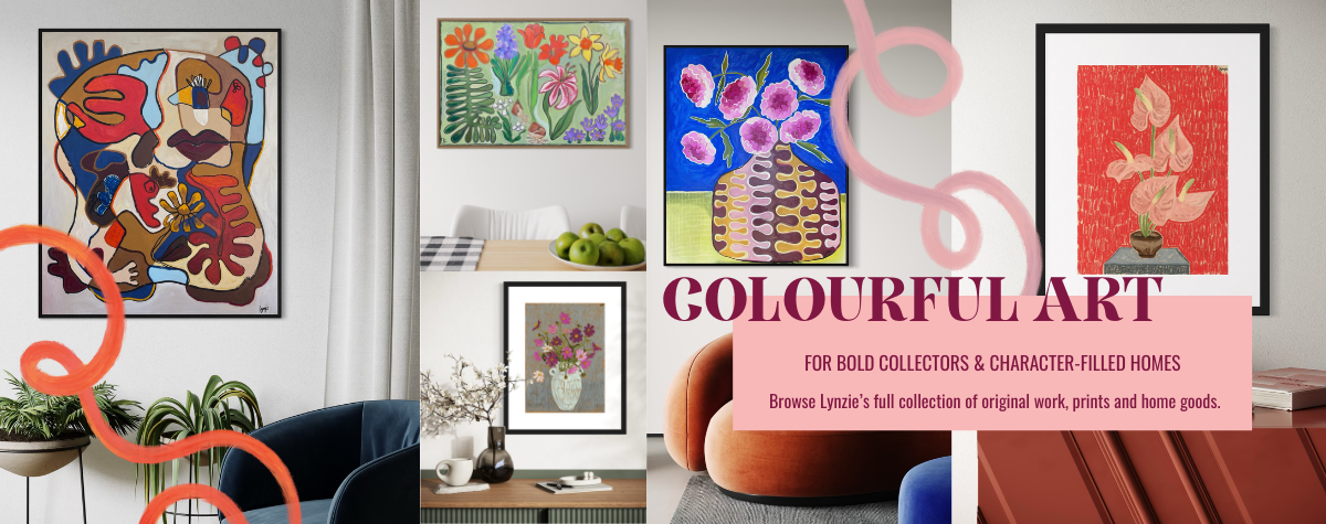 Large Works by Lynzie Bremner are bold, colourful pieces created with acrylic and oil on canvas.